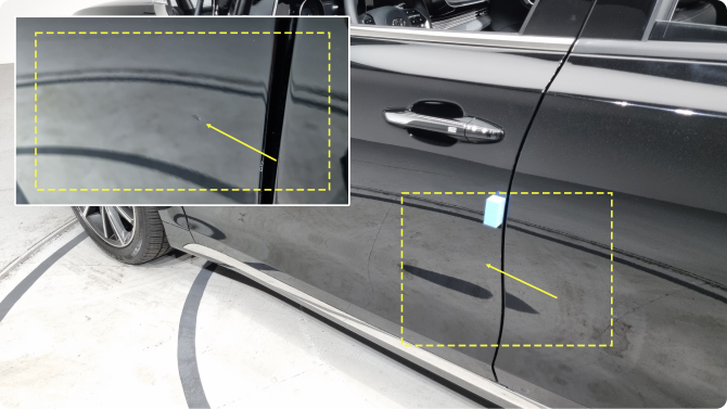 유리 부위 3mm 이하 3개 미만의 샌드/스톤칩, 썬팅 손상 및 도어 끝단 도장 손상 등 일상적인 사용에 의한 생활 스크래치 수준의 외관상 흠집은 별도의 조치를 취하지 않습니다.